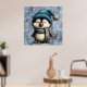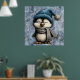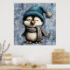 Cute Winter Blue Penguin With Hat And Scarf Poster