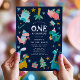 Celebrate your child's 1st birthday with our Christmas Winter Dino first birthday Party invites! This cute birthday party design features a frame of colourful dinosaurs, dressed in hats and scarfs bearing gifts and your custom party details in modern typography against a navy blue background. Simply personalise the birthday party invites by adding your child's name and party details.