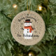 A cute Christmas snowman with the words Merry Christmas decorates this ornament. Personalise it with your family name. A fun accent for the Christmas holiday season. Designed for you by Blackberry Boulevard.