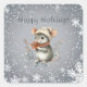 A cute grey mouse dressed for winter in a stocking cap and scarf holds berries and wishes you “Happy Holidays.” It is surrounded by a white snowflake design. The greeting can easily be changed to anything you prefer.