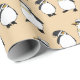 Cute Winter Penguins on Apricot Christmas Pattern Wrapping Paper