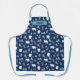 This beautiful winter apron features a pretty pattern of cool Christmas trees, a cute fox, deer, and white polar bear on a deep navy blue background sprinkled with snow. Lovely holiday chef gift for Xmas.