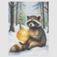 Sweet Christmas tissue paper with a sweet watercolor raccoon holding a gold ornament sitting in a snowy forest.