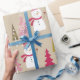 Cute Winter Snowman Pink Christmas Trees Kids Xmas Wrapping Paper