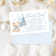 Introducing our elegantly crafted book for baby cards, specially designed for a cute winter themed baby boy shower. These adorable cards feature a watercolor teddy bear wearing a blue bow and holding blue balloon, sitting near pine tree, surrounded by snowflakes. Perfect for festive Christmas baby celebrations.