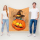 Cute Witch Cat and Pumpkin Halloween Friends Fleece Blanket