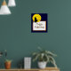 A Happy Halloween poster with a cute witch flying across a swirly orange and yellow moon on a blue background. Click Customise It to add your name or message, change elements and sizing and more, even save your design for later.