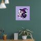 Cute Witch with a Broom Black Cat Bats Moon | Poster