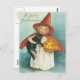 Cute Witch With Cat Vintage Postcard