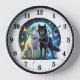 I received this as a birthday gift from my husband to replace a clock that had broken. It was perfect, pictures of my sweet family to see at every hour of the day. The size of the pictures looks nice for the size of the clock and I love looking at it! The only downside is there is no cover for the battery on the back, which makes me nervous having little kids running around the house, but an easy fix with some tape. The printing turned out clear, considering they were all cell phone pictures. Some of them look slightly grainy upon getting close up. But so nice overall!