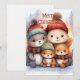 Celebrate the magic of the holidays with this charming personalized Christmas card featuring a cozy woodland family dressed in winter hats and scarves. The soft frosty background sets a warm festive mood, while your family name adds a personal touch to the front. Perfect for sending heartfelt greetings, displaying on the mantel, or gifting to loved ones who adore woodland charm.