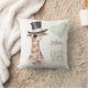 Sweet watercolor giraffe with green top hat and heart nursery pillow for boy or girl. Add name to personalise. Just adorable!