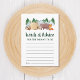 Cute rustic baby shower words of advice enclosure card featuring a watercolor illustration of woodland animals with their tent camping in the mountains and forest and "Words Of Advice For the Mummy-To-Be" and in a dark hunter green script and stylish typography.