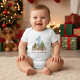 Celebrate your little one’s first Christmas with this adorable watercolor baby bodysuit (also perfect as a cozy holiday outfit or romper) featuring a sweet woodland scene with a deer, bear, bunny, squirrel, and Christmas trees around a big number one decorated with snowflakes. The whimsical boho watercolor illustration adds a soft, cozy, and joyful touch to your baby’s holiday look. Personalize with your child’s name and easily change the font color to match your style. Available in a blue, pink, green, and red number one—perfect for a baby boy or girl. Makes a lovely personalized gift for new parents and a precious keepsake for baby’s first family Christmas photos.