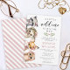 Watercolor cute Woodland animals, forest animals: racoon, hedgehog, fox and own baby girl shower invitation.