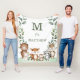Cute Woodland Animals Greenery Monogram Baby Fleece Blanket