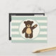 Cute Woodland Brown Bear; Sage Green Stripes Postcard