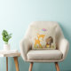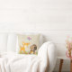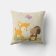 A pillow with a cute illustration featuring a baby deer and a little squirrel holding an acorn and a butterfly flying above their heads. These adorable woodland creatures on standing on some grass with some whimsical mushrooms by their feet.