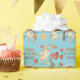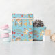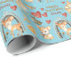 This Happy Birthday gift wrap paper features a cute pattern of woodland animals, including deer, birds, and a little bunny rabbit. Along with the various animal images are hearts and a boho style rainbow. Your custom text is in gold and rose pink. Everything is placed on a blue background. Fun for kids of all ages!