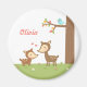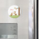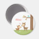 Express mother's love for child with this cute woodland forest themed magnet for the little one! It features a mother and child deer, doe and her fawn blissfully at a grass patch that has cheerful red tulips and white daisies. A blue bird is perched on a tree branch. Personalise with child's name.