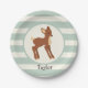 Cute Woodland Deer; Sage Green Stripes Paper Plate