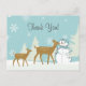 Cute Woodland Deer with Snowman Winter Thank You Postcard