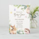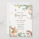 Cute woodland forest animals themed baby shower invitations featuring a baby bunny, hedgehog and an owl.