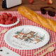 Whimsical woodland baby shower paper plate featuring adorable watercolor illustration of four forest friends: fox, bear, deer and racoon