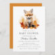 Invite guests to celebrate the mummy-to-be with these adorable woodland-themed baby shower invitations. The gender neutral baby shower invite features a watercolor illustration of a baby fox sitting on fall leaves in shades of orange, red, and yellow. Personalise the baby fox baby shower invitations with the mother-to-be's name and shower details.