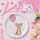 NewParkLane - Personalised Paper Plates, with a soft pink (blush) and white striped design, with a cute woodland mouse in watercolor, with a pink balloon for your personalise text.