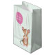 NewParkLane - Personalised Baby Shower Gift Bag, with a cute woodland mouse in watercolor, with a pink balloon, for your personal text, against a mint green striped background.