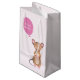 NewParkLane - Personalised Baby Shower Gift Bag, with a cute woodland mouse in watercolor, with a pink balloon, for your personal text, against a baby pink striped background.