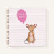 NewParkLane - Personalised Notebook, with a cute wood mouse in watercolor, with a pink balloon, for your name or other personal text, against a blush pink striped background.