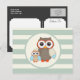 Cute Woodland Owls; Light Sage Green Postcard
