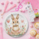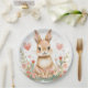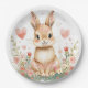 Cute Woodland Rabbit Pink Hearts Pastel Flowers Paper Plate