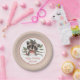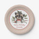 An adorable woodland animal theme for a little boy's birthday party, this design features a cute watercolor illustration of a woodland racoon in red bow tie among the branches. Happy Birthday text is written in whimsical type face with a text template to personalise with your child's name. The background of the design is a neutral beige confetti pattern. These paper plates are available in two sizes. The smaller 7' size (shown here) is a good choice for serving birthday cake or small items. The larger 9" size is a better choice for food or more substantial sized treats.