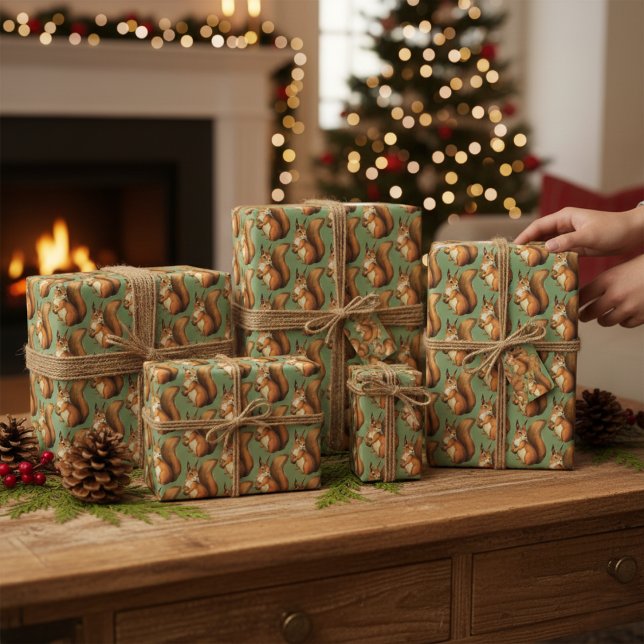 Bring the charm of the forest to your gifts with our Cute Woodland Squirrel Wrapping Paper. This endearing design features a repeating pattern of fluffy-tailed squirrels, each clutching a nut, set against a calming sage green background. The warm, inviting colours and detailed artwork make this paper perfect for any nature lover, animal enthusiast, or anyone who appreciates a touch of rustic cuteness. Whether for a birthday, holiday, or just because, this paper is a delightful way to present your thoughtful gift.