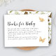 Cute Woodland Theme Books For Baby Enclosure Card featuring cute watercolor butterflies and a woodland pattern design on the back of the card. The words 'Books for baby' are in a stunning script font which looks stylish, elegant and sophisticated. This classic piece is ready for you to customise with the details of your special event. Fonts and colours of fonts can be changed if you so wish or leave as shown here.