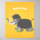 Cute woolly mammoth cartoon illustration poster