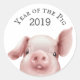 A cute pink pig peeks upward in this envelope seal sticker designed for celebrating the Year of the Pig - 2019. You can edit the text if you wish to use other wording or delete the text entirely if you prefer the sticker with only the pig graphic. This sticker is available in 2 sizes: the small 1 1/2" stickers make nice envelope seals for your letters, card and invitations and the larger 3" size is a good choice for party favours or other desired uses.