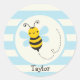 Cute Yellow & Black Bee on Baby Blue Stripes Classic Round Sticker