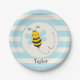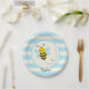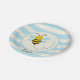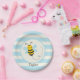 Cute Yellow & Black Bee on Baby Blue Stripes Paper Plate