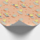 An Easter wrapping paper with an amusing pattern of Easter eggs cracking , little yellow chicks showing up and a few spring orange flowers .