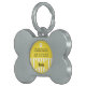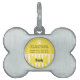 A cute yellow dog ID tag which features the dogs name, the owners address, phone and mobile number. This dog ID tag is very helpful in case your dog runs away.