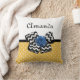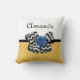 Cute Yellow Dots Blue Rose Chevron Bow With Name Cushion