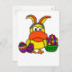 Cute Yellow Duck with Easter Bunny Ears and Basket Holiday Postcard