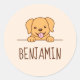 Cute Yellow Lab Dog Peeking Custom Name Classic Round Sticker