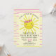 Cute sunshine birthday party invitation to celebrate your little sunshine's first birthday. You have a cute yellow sun with pink flowers illustration to reflect your sunshine birthday theme .The pink and yellow stripes pattern on the back add a modern look to the sunshine party invite. personalise with details. Please contact for any help.