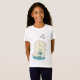 A girls t-shirt with a cute smiling dinosaur, pink rosy cheeks and RAWR written on his belly. 3 colourful happy stars above his head.