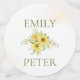 Cute Yellow Sunflower Floral Round Wedding Party Confetti. The design is simple yet elegant with sunflowers . Customise them by changing the names of the bride and groom and the wedding date. This is part of a collection. Check out the collection for other coordinating products .For any further customisation , feel free to contact me at mypaperlove2021@gmail.com